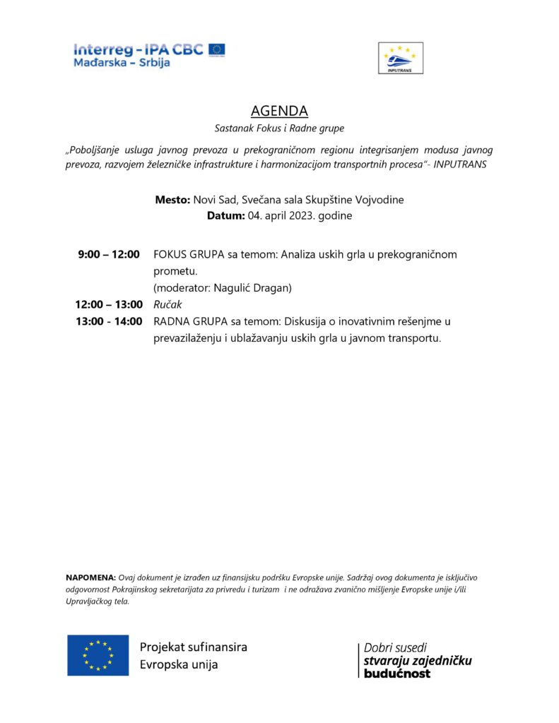 On April 4th 2023 the Inputrans team organized two important meetings, one Focus group and one Work group with the aim to investigate the issue of bottlenecks in the cross-border transport of passengers and cargo and innovative solutions for overcoming and alleviating bottlenecks in public transport. There were more than 30 participants present. The event was organized at the Ceremonial Hall of the Assembly of Vojvodina in Novi Sad.